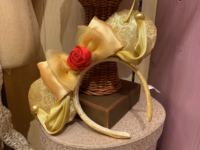 美女と野獣 ベルカチューシャが登場 ドレス バラがモチーフになったデザイン